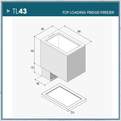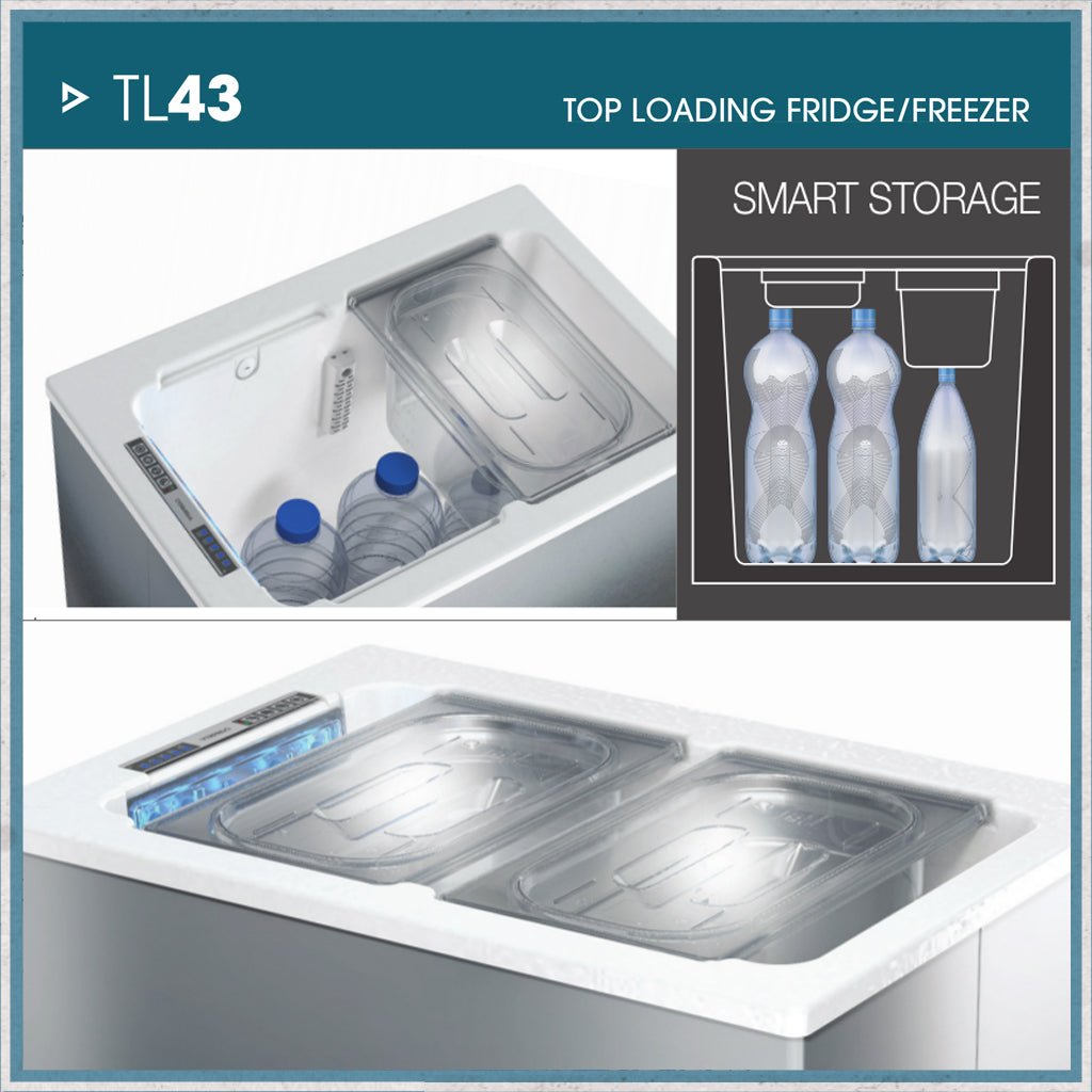 The new TL43 has a 40 litre capacity in a top opening fridge that is only 450mm deep. The internal height of 325mm allows you to stand standard wine bottles to upright.