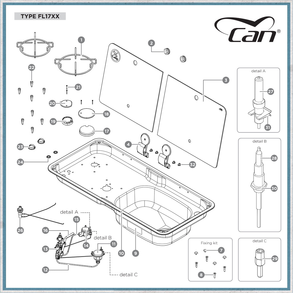 CAN FL1700 Twin Burner Hob/Sink Combination Unit - Spare Parts