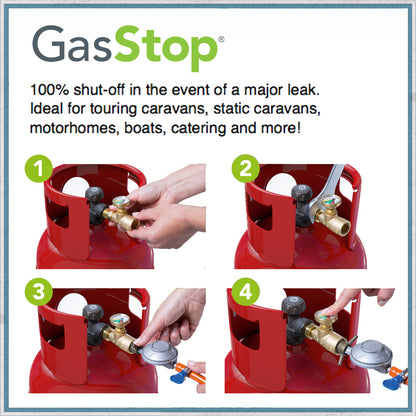 GasStop will instantly and automatically shut-off the supply of gas in the event of a major leak or regulator failure*