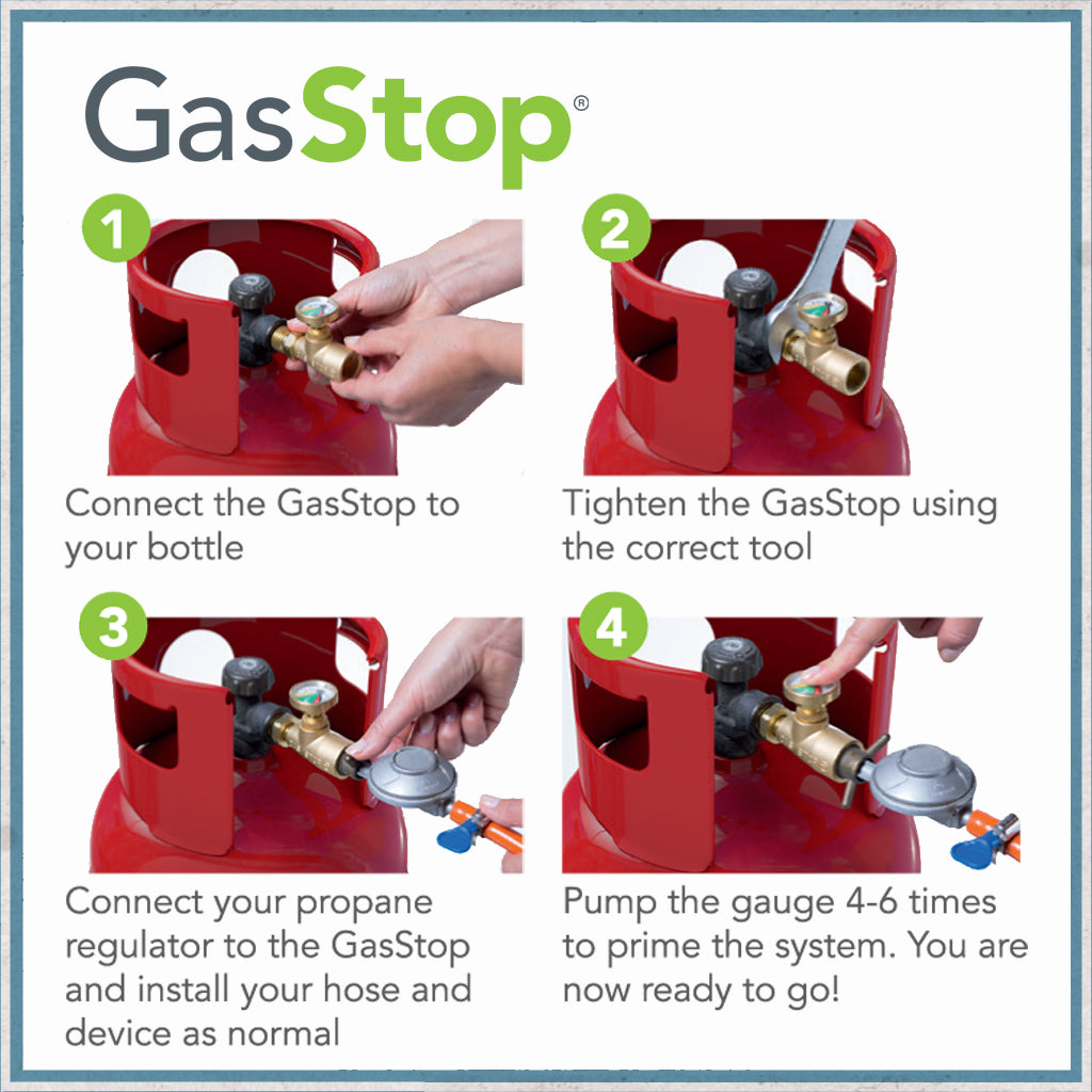 GasStop can also be used to test for minor leaks prior to use. Always check to make sure your gas system is leak free.