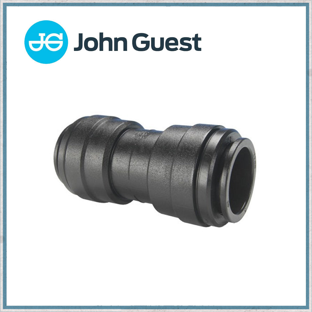 This John Guest straight connector uses the push fit pipe connector system to accept semi-rigid 12mm water pipes.