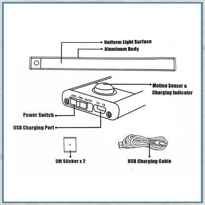 40cm Rechargeable LED Strip Light with optional Motion Sensor
