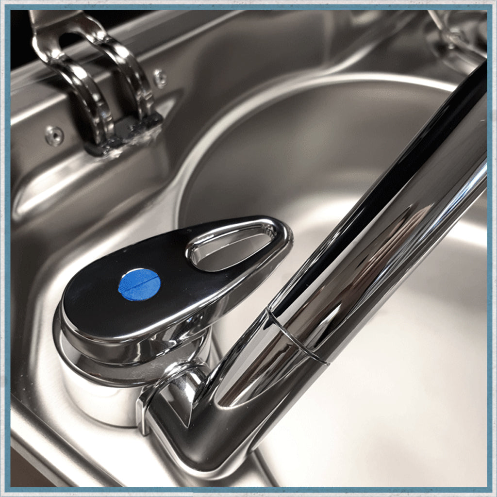 This chrome fold away tap from Reich has a built in switch to control an electric water pumping and is the perfect companion to the Smev Dometic combination cooker and sink units, including nthe popular 9222 and 9722's, where the faucet needs to fold down allowing the glass lids to close.