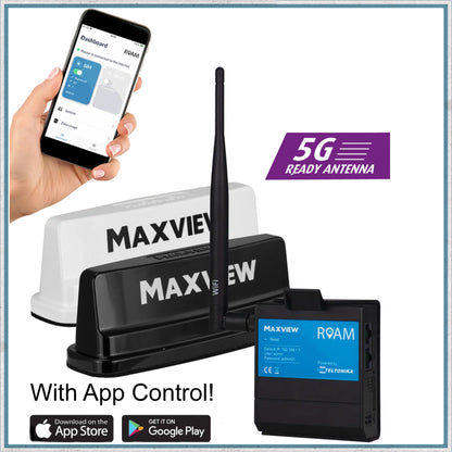 The Maxview Roam Campervan WiFi kit users a router and an externally-mounted antenna (5G ready) to take 3G and 4G and turn it into a WiFi hotspot for your vehicle. This means in low signal and remote areas you can stay connected.