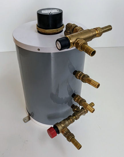 The Surecal 10 litre Calorifier offers quick and easy installation with all standard features included - immersion, pressure release valve, barbed engine coil connections, and stainless steel fixing brackets.