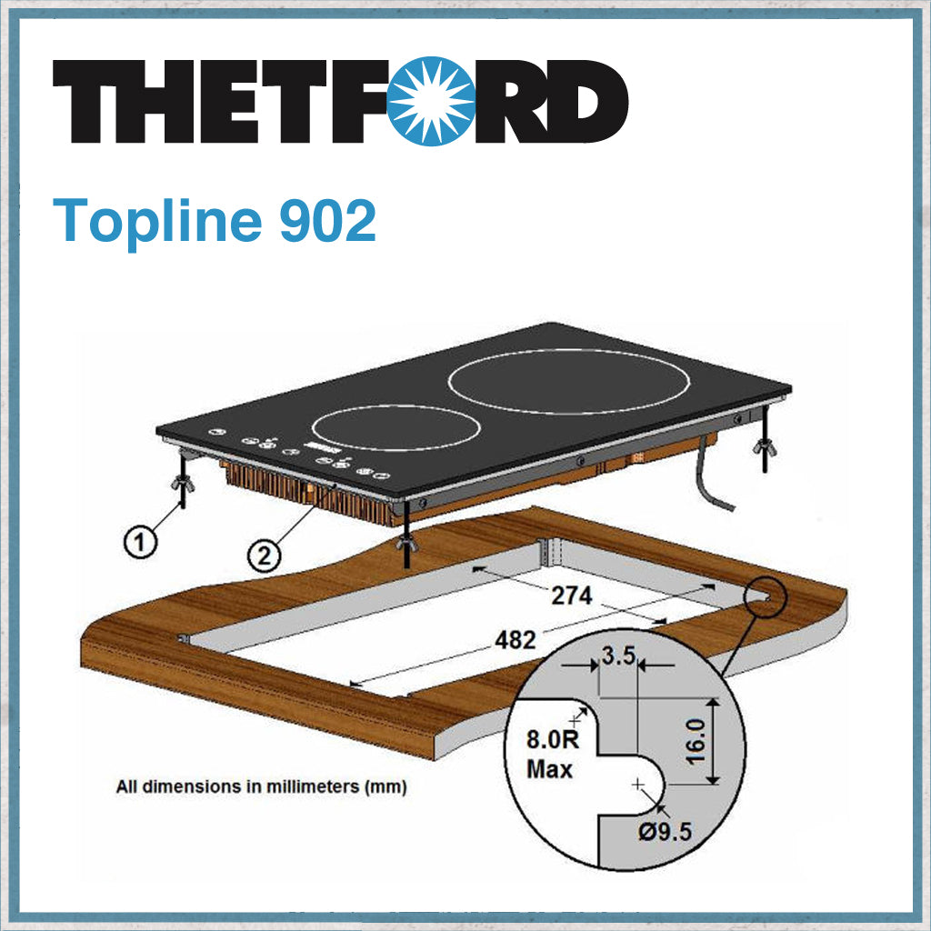 The Topline 902 is an induction hob developed and optimized for use in your caravan or motorhome including all safety and easy to use functionalities. Made from high quality Schott Ceran glass and running from a 230v electric supply.