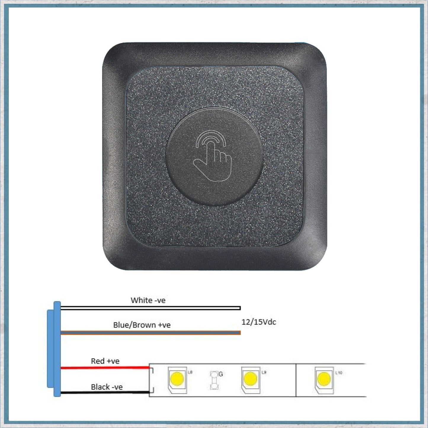 This 12V touch panel dimmer switch is designed to fit into the range of CBE and C-line surrounds