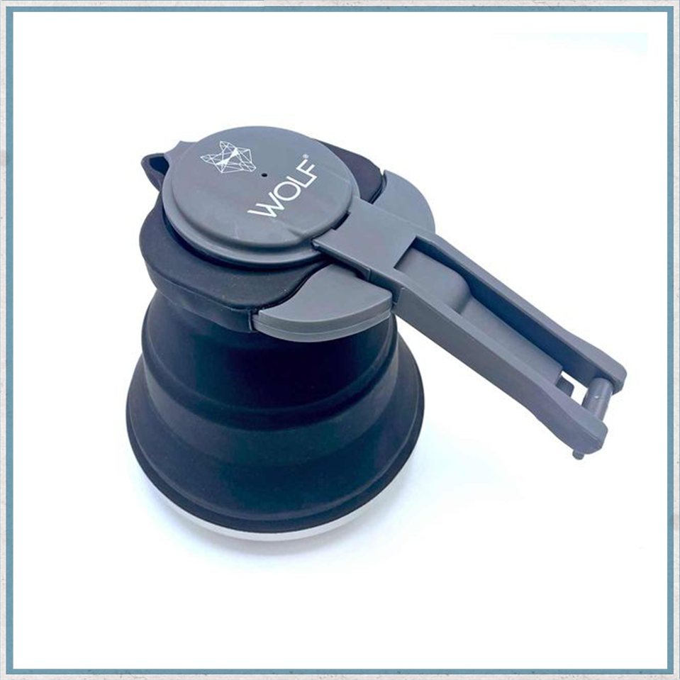 This Wolf Outdoors Collapsible Kettle is designed for camping and outdoor excursions, with practicality, durability, and convenience in mind. Made with a stainless steel base and silicone material, it offers a compact and collapsible design for easy portability. Perfect for your next adventure!